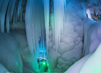 Дори температурата навън да е плюс 17 градуса, вътре в тази ледена пещера в Китай пак е вечна зима