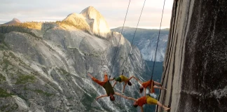 Висящ танц върху скалите на Йосемити, надвиснали на повече от 900 метра височина