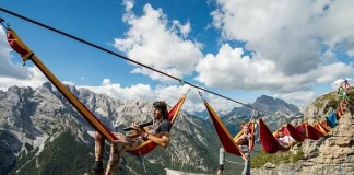 Да висиш на хамак някъде във въздуха над Алпите - с това се занимават присъстващите на най-големия слаклайн фестивал International Highline Meeting в Италия