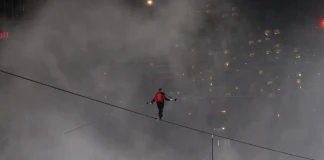 Ник Валенда извървя успешно разстоянието между кулите Marina Towers в Чикаго, по въже, без предпазна мрежа