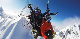 Дроп от парамотор и вълнуващо ски/сноуборд спускане в Аляска във видеото на Ксавие де ла Ру