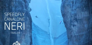 Лука Тамборини и Джакопо Пелицари правят първото speedflying спускане от Каналоне Нери, намиращ се в планинската верига Доломити и висок 1000 метра