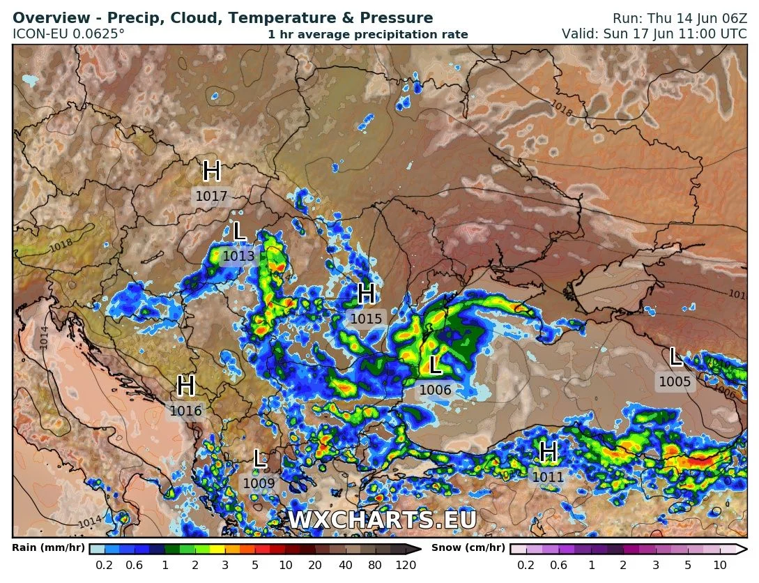 В планините на Южна и Централна България ще има гръмотевични бури с превалявания след 13 ч. Валежите няма да са много продължителни, но ще е влажно и облачно в планините. Вятърът над 1500 м също ще се усилва от изток – 6-8 м/с, на места до 8-10 м/с.