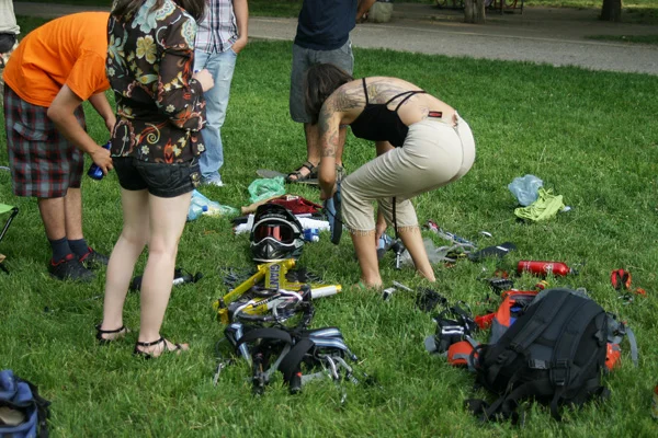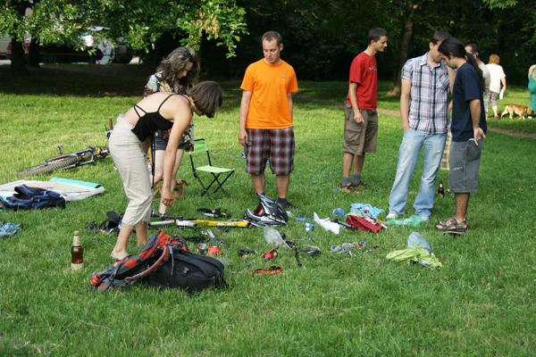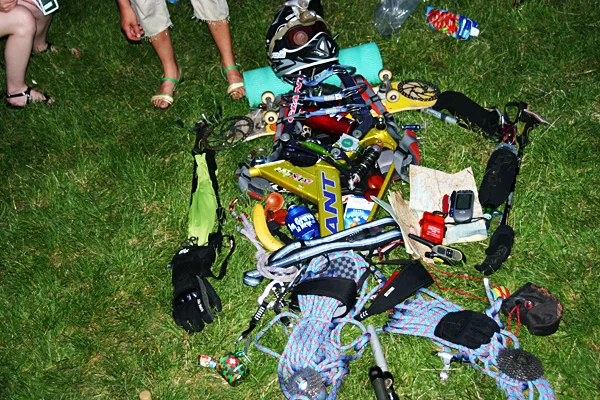 Разбираемо, предвид огромната купчина всевъзможни екстремни джаджи, струпани на земята, която постепенно започна да се оформя като цялостна структура. Стараехме се да вплетем органично наличните елементи – доста разнообразни като съдържание, от въже и карабинери до финка и компас. Всички те са реални, имат си собственик и история, включваща многобройни екстремни или не чак толкова преживявания, но по-важното е, че одушевиха нашия приятел, робота.