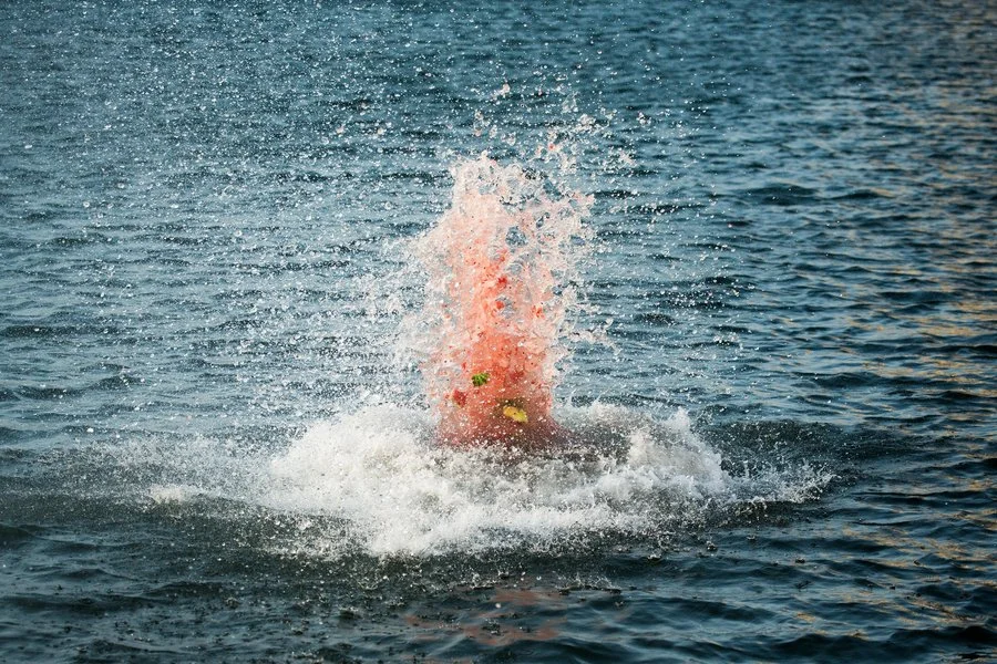 Red Bull Cliff Diving се провежда в естествени водни басейни. Често метеорологичните условия предизвикват вълни, приливи или отливи, а освен това атлетите трябва да се съобразяват и със силата на вятъра. За щастие, всички те са толкова добре подготвени, че да не се приземят по корем. Вижте обаче какво се случва, когато диня срещне водата: