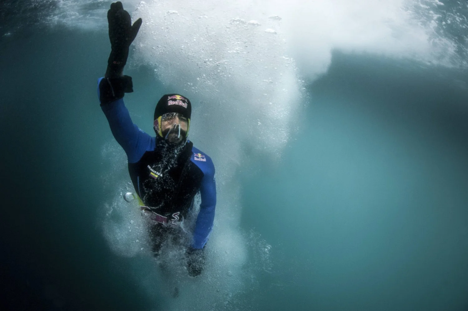 Температурата на водата, в която Дюк скача, е под 1 градус по Целзий. Колумбиецът изпълнява общо 3 скока.
