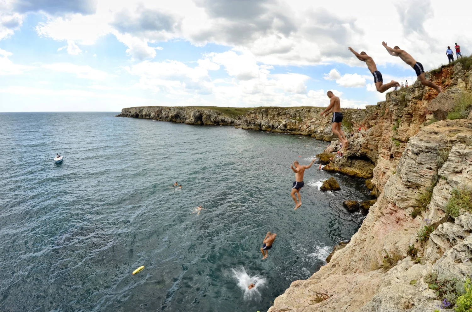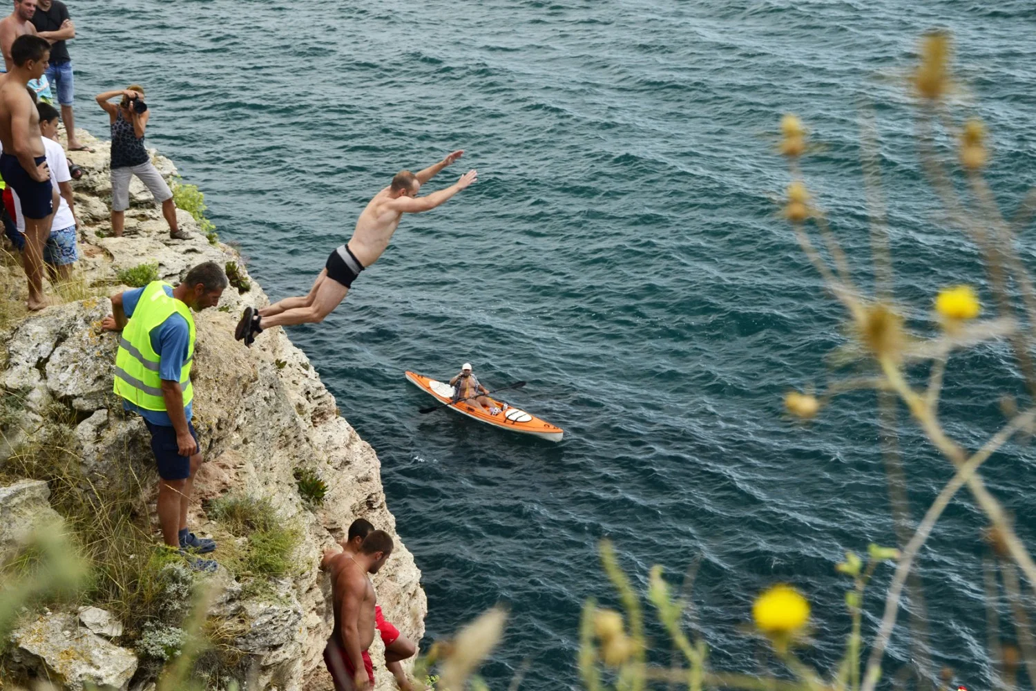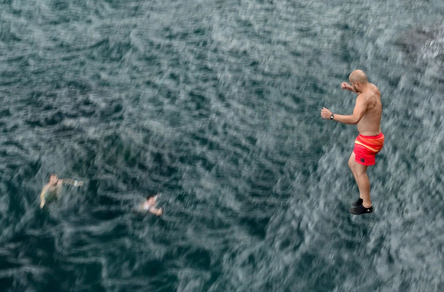 Веднъж готови да предприемете самоотверженото хвърляне в бездната е добре да се огледате за наличието на други скачачи във водата. Ако такива има ще трябва да ги изчакате да се отдалечат на безопасно разстояние, за да не връхлетите върху нечия нищо неподозираща глава. Ако долу е калабалък, е добра идея да подадете звуков сигнал за намерението ви да скочите, защото лятото на морето хората са спонтанни и често предприемат резки и необмислени действия…