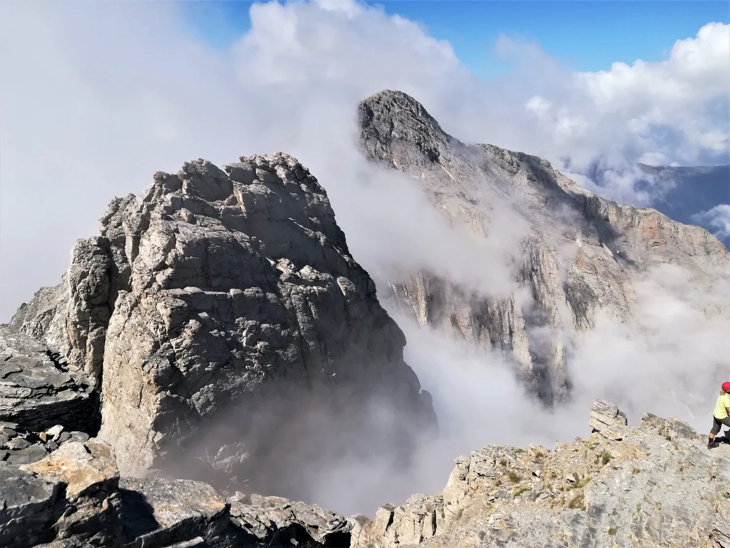Когато преодолеем тази височина, все още няма да сме достигнали крайната си цел. Виждаме, че ни предстои малко по-адреналинов участък, който обаче се преминава бързо, а след него пред нас вече ще са последните метри до 2917 м. В този момент ентусиазмът е водеща сила, което означава, че докато се усетим, вече ще отправяме поглед на 360 градуса от най-високия връх на планината Олимп.