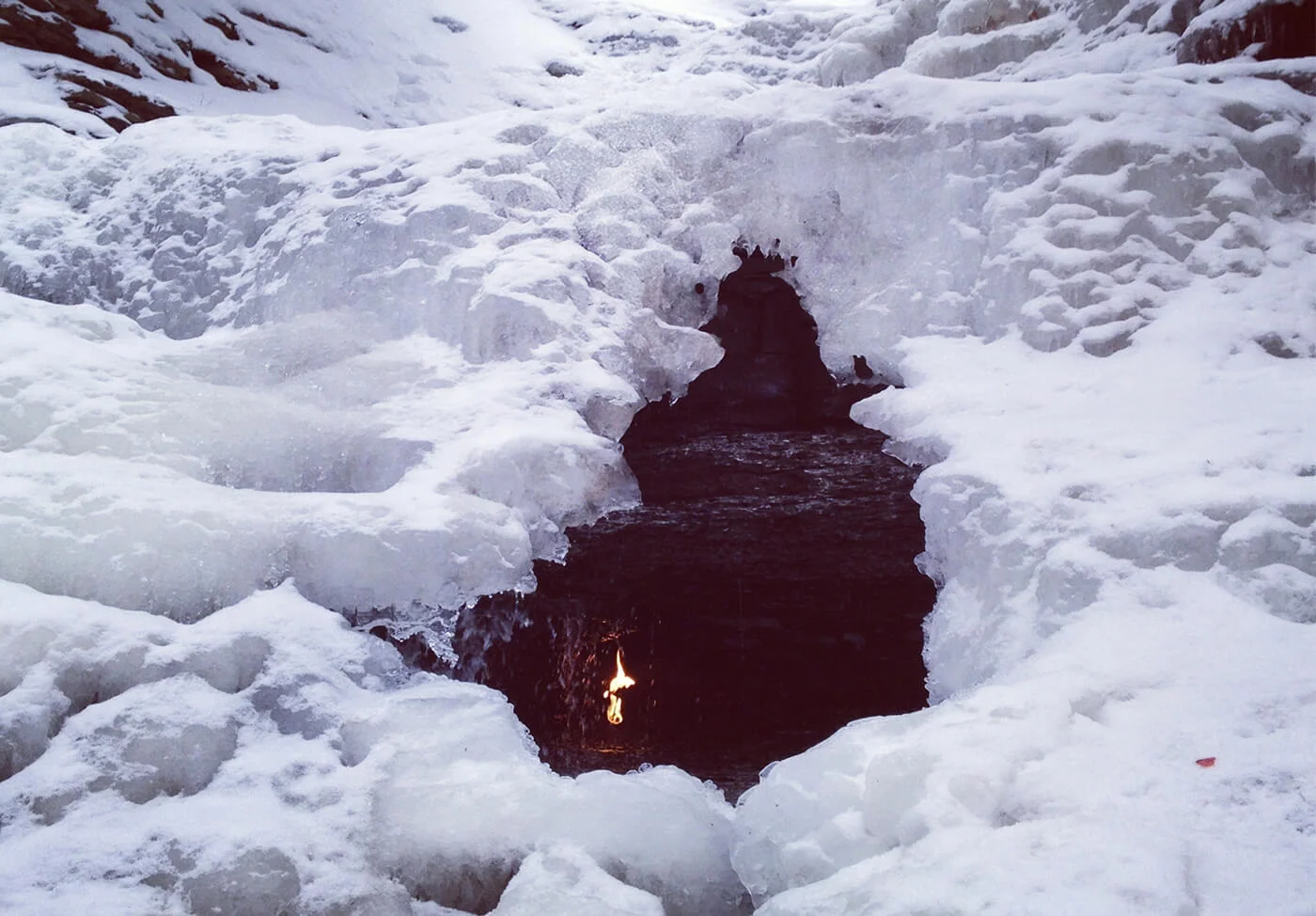 Пламъкът гори в съвсем малка пещера под водопада. Явлението е резултат от изтичането на природен газ от недрата й. То е било обект на различни научни изследвания през годините. Въпреки това, процесът, благодарение на който огънят гори почти през цялата година толкова близо до вода, все още не е напълно разгадан.