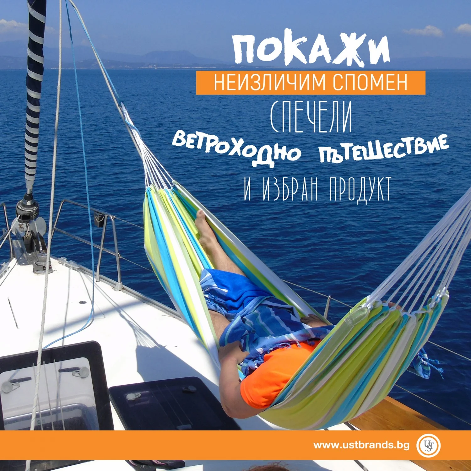 Един от всички, участвали в играта “Незабравимият къмпинг”, ще спечели ветроходно плаване за двама около остров Тасос, осигурено от USTbrands.