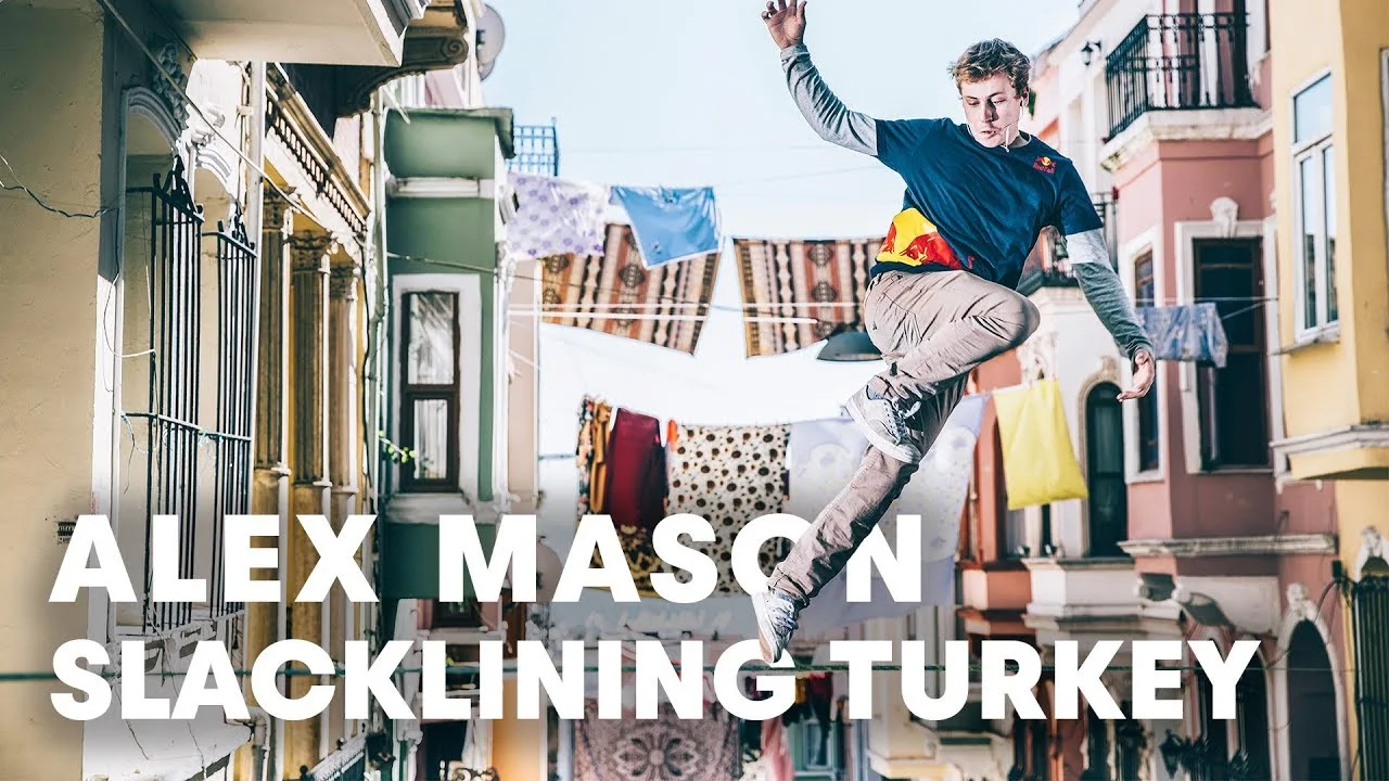 Да отскочиш до съседите, които живеят в отсрещната къща, май не било толкова трудно. Със сигурност не и за американския слаклайнър Алекс Мейсън. Едно от пътуванията му го отвежда в Турция, където той впечатлява с уменията си хората по улиците на Еминьоню, един от кварталите на Истанбул. Атлетът практикува любимото си занимание на не чак толкова традиционно място – опънати простори между къщите в града.