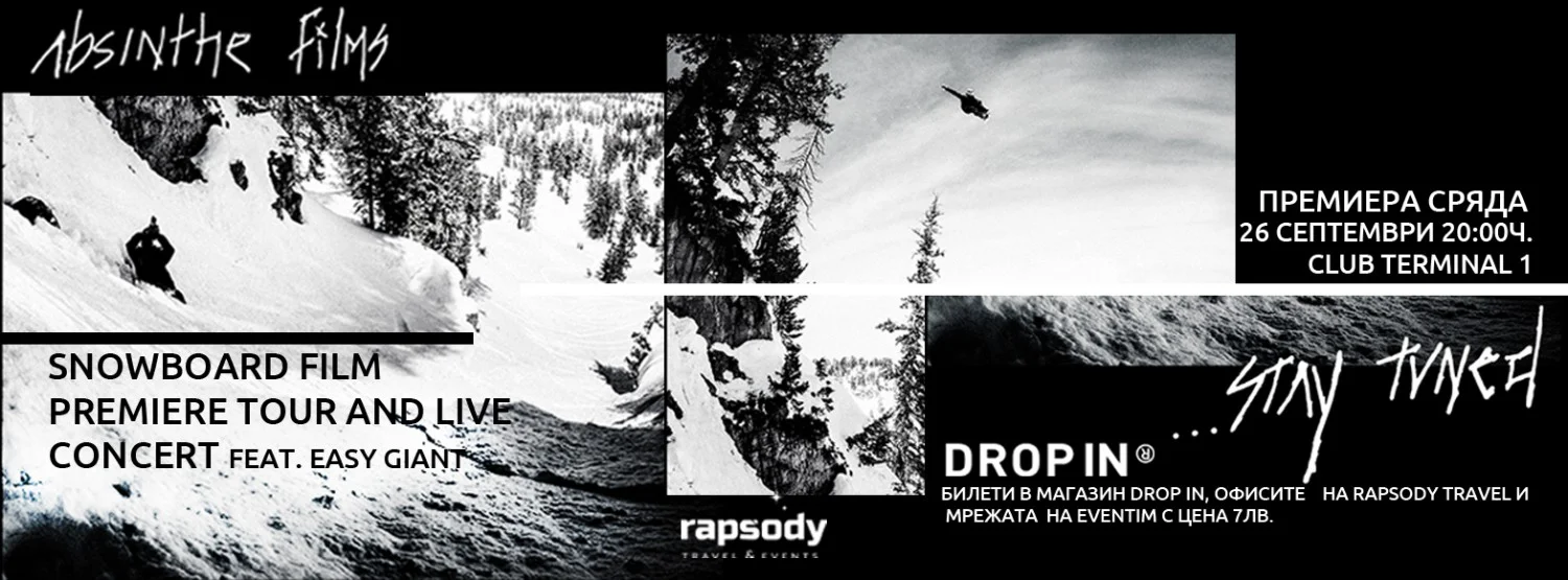 Броени дни остават до официалната премиера на един от най-дългоочакваните сноуборд филмови проекти за тази година – Stay Tuned. Организаторите на събитието от Drop In Core Shop, Burton Bulgaria, Rapsody Travel & Events Bulgaria, заедно с екип на Absinth Films, ни канят на 26-и септември в клуб Терминал, където с прожекцията на филма, ще поставим и началото на новия зимен сезон.