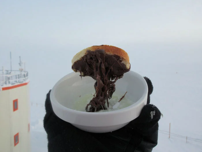Ученият не е изненадан от подобен развой и заснема произведенията на антарктическото изкуство за своя профил в Twitter, като добавя: “Прясната ни храна свършва още в началото на зимата, дълго време нямаме снабдяване с нова, затова през повечето време ядем главно замразена храна. Тъй като температурите тук никога не са положителни просто я държим в контейнери навън”.