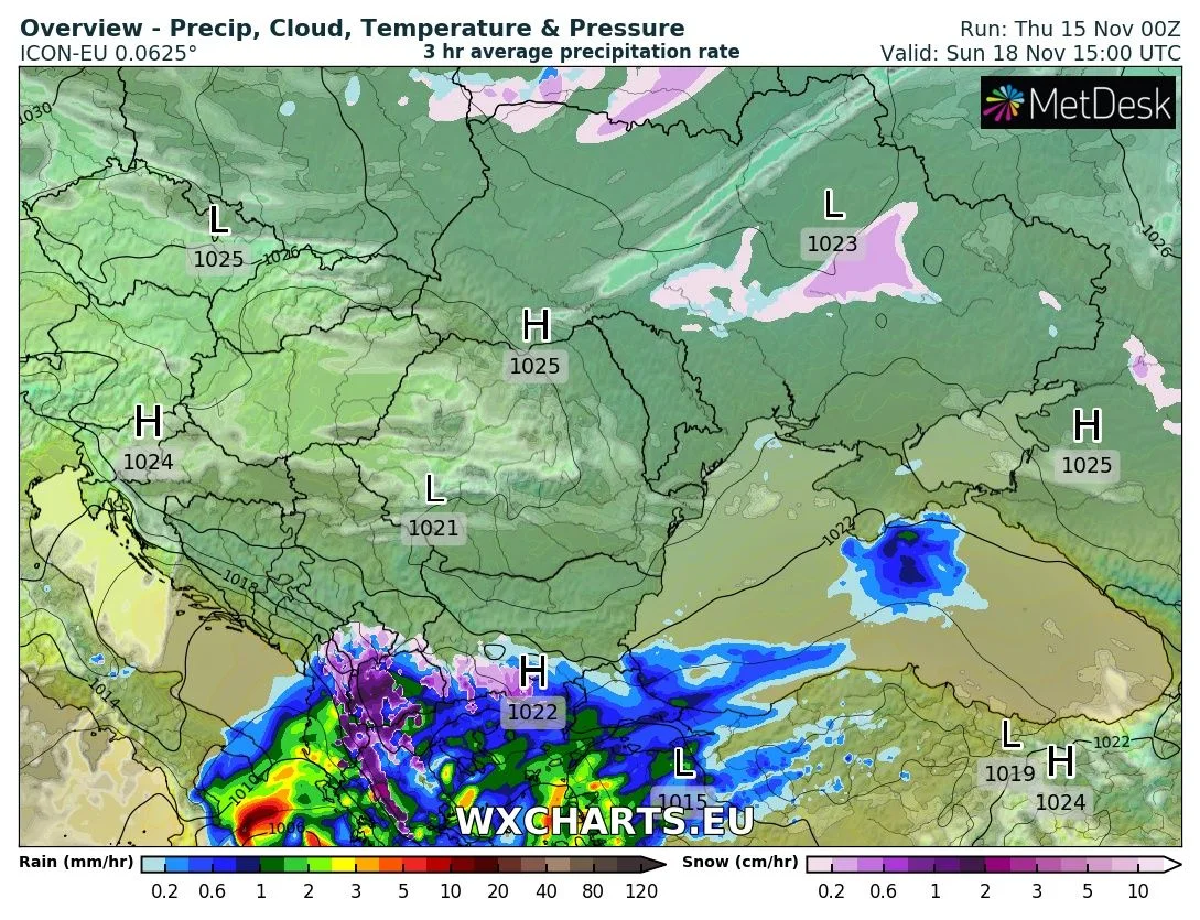 В неделя ще се затопля с около 1 градус и от югозапад ще започват значителни валежи от дъжд и снеговалежи над 1200-1600 м. Вятърът ще се усили и ще се преориентира от югоизток със скорост 3-5 м/с, а над 1500 м – до 12-15 м/с. Късният следобед валежите в цяла Западна България, дори в равнините, ще са от сняг, дъжд ще вали само в крайните североизточни райони, Централна и Източна България.