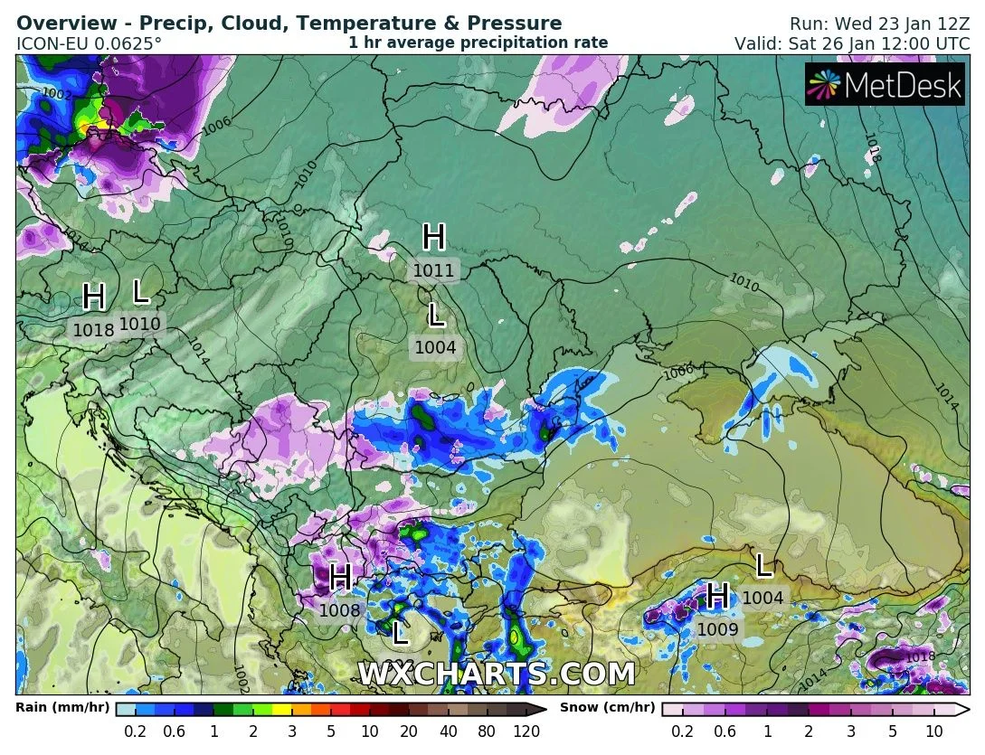 В събота снеговалежите в Западна и Централна България ще продължат, а в източната част на страната ще вали дъжд. Вятърът ще се преориентира от запад-северозапад и дори в ниските части ще се усилва до 7-10 м/с. Целият ден ще е облачно и мъгливо в планините. В края на деня валежите ще спират, а за София се очкват около 4-8 см нова снежна покривка.