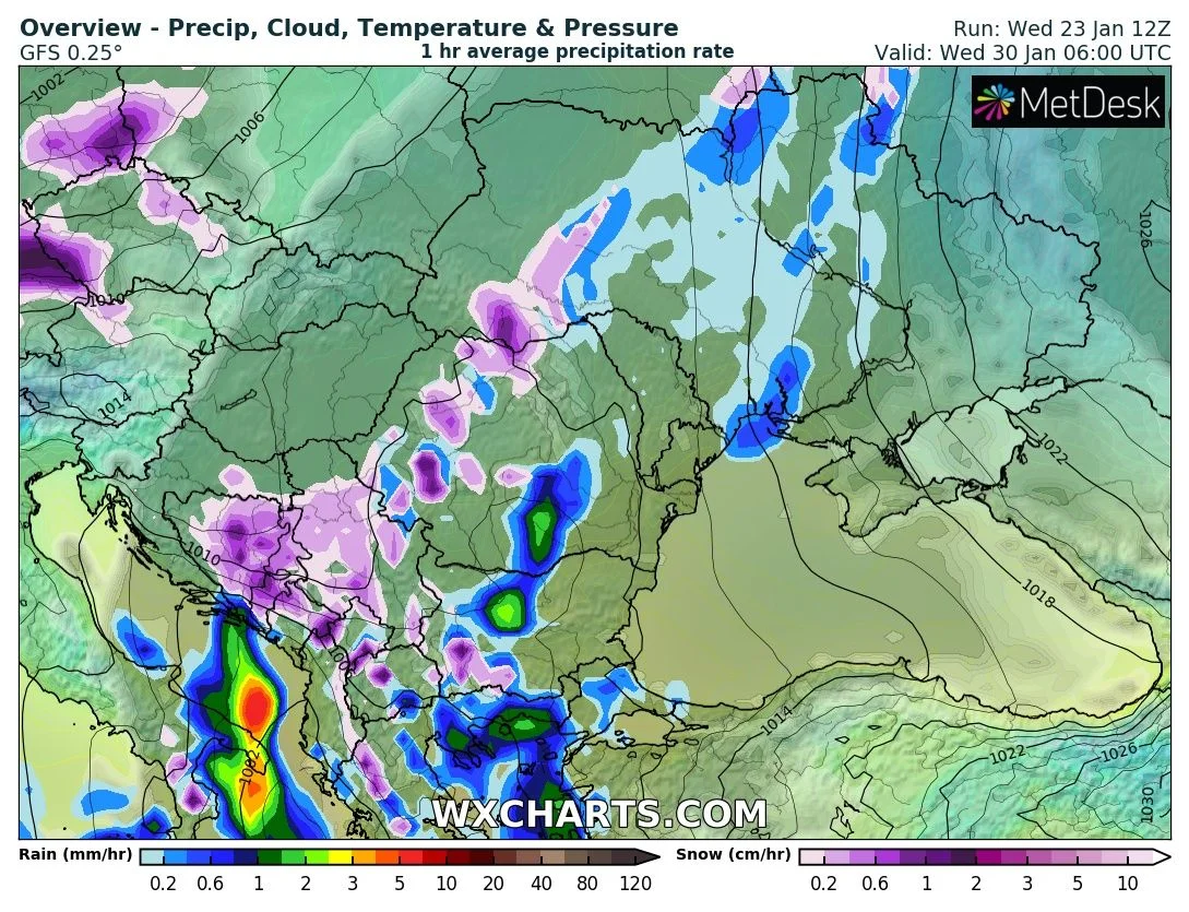 В петък валежите от сняг ще се засилят, но ще са главно в югозападната част на страната и над Сърбия и Македония. Ще започне захлаждане и сняг ще вали над 500-800 м нмв. и вятърът от изток-югоизток над 1700-1900 м ще се усилва до 8-12 м/с. Над Пирин и Родопите се очакват най-значителни снеговалежи с нова покривка от около 30-40 см само за петък. За Рила и Осогово – около 20-26 см.