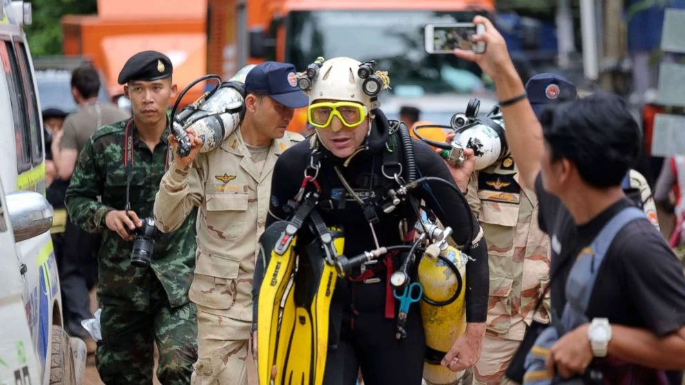 Международният екип от пещерни водолази и спасители, който проникна в тайландската пещера Кхао Луанг, за да спаси момчетата и треньора на футболния отбор, изчезнали вътре.