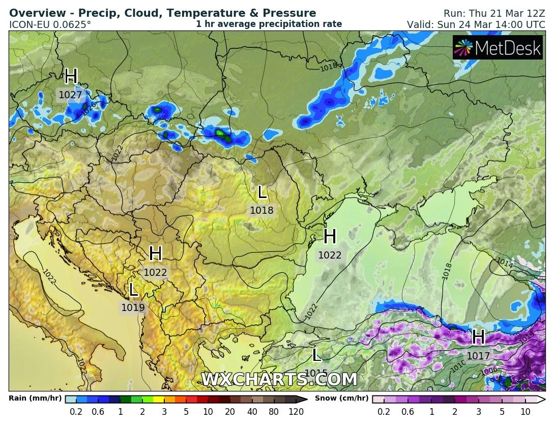 В неделя ще е без валежи и вятърът ще отслабва с 1-2 м/с и над 1500 м ще бъде от север – 4-7м/с, по-силен в източната част на страната – до 5-8 м/с.
