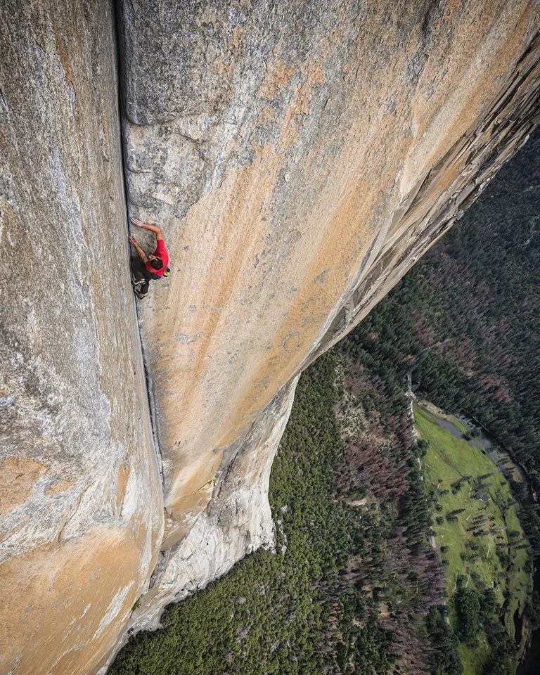 Alex Honnold на пасажа Enduro Corner pitch of Freerider на El Capitan/ фотограф Jimmy Chin/ източник - Jimmy Chin Facebook Page