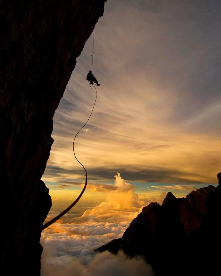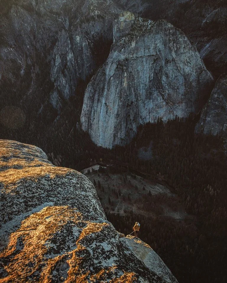 Участник в снимачния екип на Jimmy Chin се спуска по 900 метровата гранитна скала на El Capitan/ източник Jimmy Chin Facebook Page