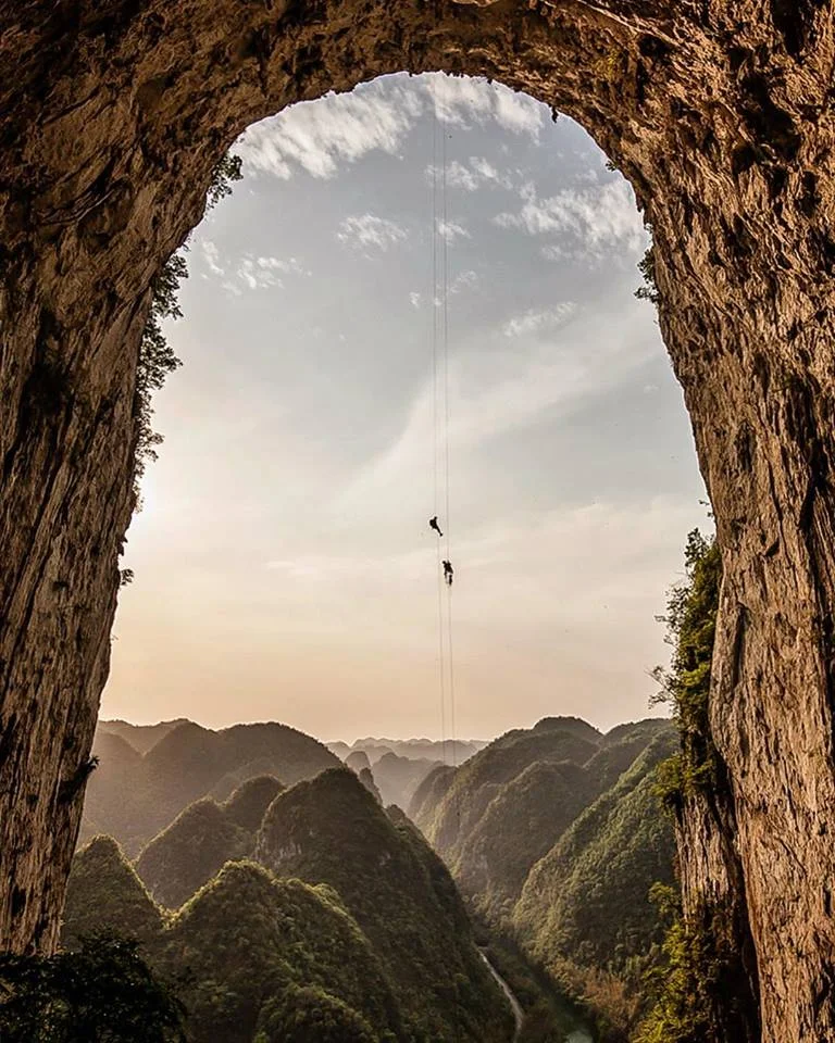 Jimmy Chin снима за National Geographic повече от 15 години/ На снимката са уловени Alex Honnold & Felipe Camargo завършвайки катерачния си ден на Getu Arch в Китай / Изтончик Jimmy Chin Facebook Page