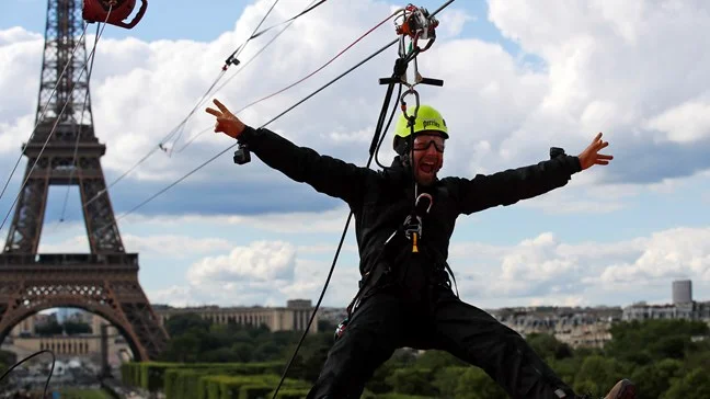 Между 29 май и 2 юни над 260 щастливци, участвали в онлайн лотария в Instagram профила на минералната вода Perrier, спечелиха възможността да изпробват временна въжена линия, която позволява късметлиите да се спуснат от кулата с цели 90 км/ч.