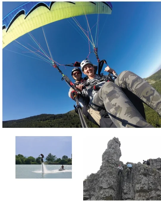 Flyboard (съвместно с “Flyboard Sofia”). Екстремен тийм-билдинг с активности като забавни и състезателни игри, походи и ориентиране в природата, въжени съоръжения, спускане с рапел, тролеи, стрелба с лък и др.