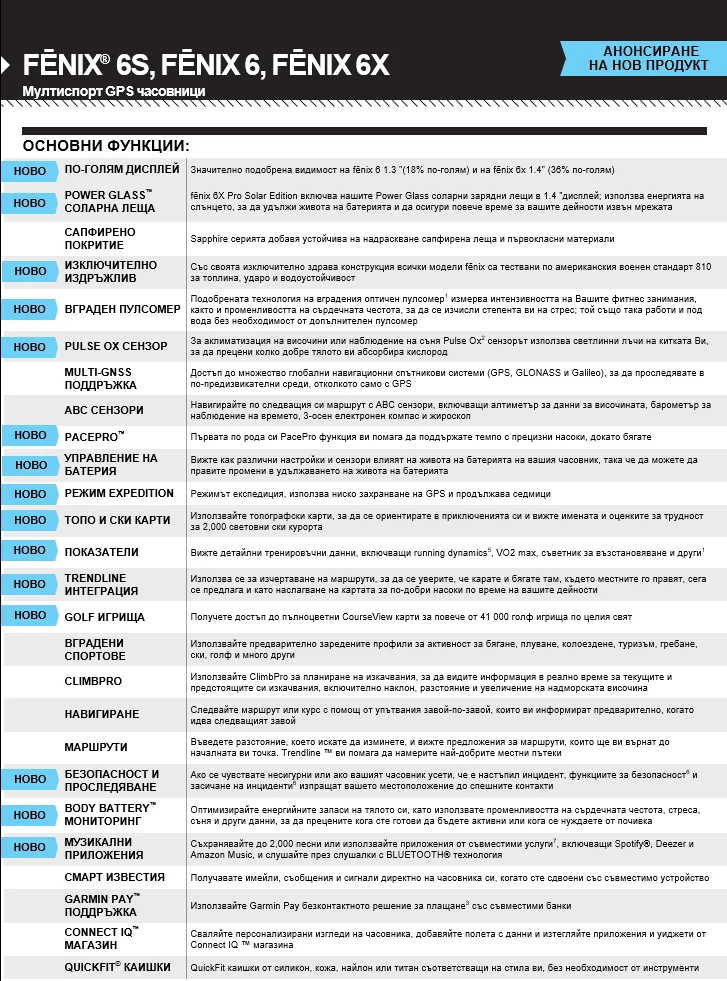 Шестата серия на една от най-успешните линии GPS часовници включва моделите Garmin Fenix 6S, Garmin Fenix 6, Garmin Fenix 6X, както и техните Pro разновидности и предлага на почитателите на марката още повече функции и нови възможности.