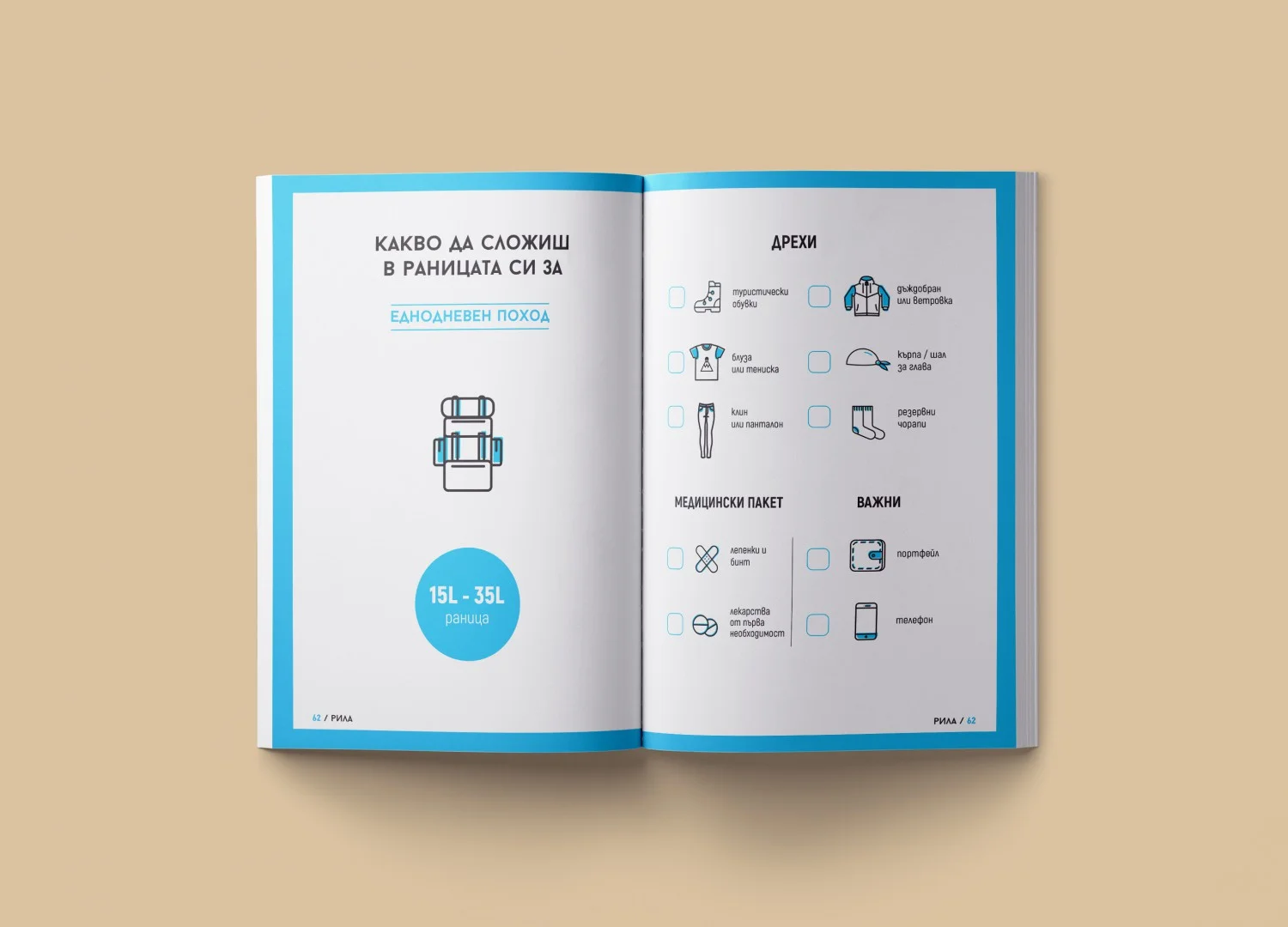 книжката ще намерите съвети как точно да подредите раницата си  и какви са