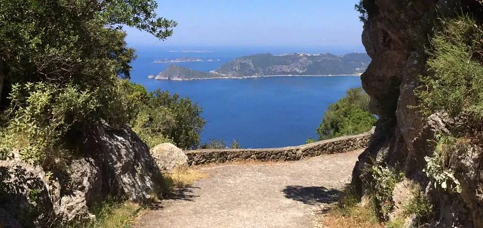 Открит през 2001 г., маршрутът през остров Корфу представлява 220 километрова пътека, лъкатушеща предимно из вътрешните, забравени и непокътнати планински райони. Пейзажите, откриващи се по пътя, са зашеметяващи и изпълнени с плажове, маслинови горички и скалисти проломи.