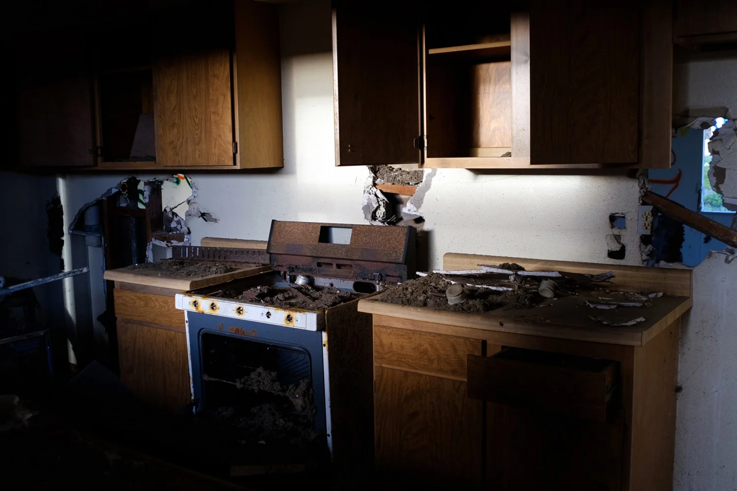 Пред него се разкриват цели булеварди, застлани с порутени къщи, докъдето око види. Сред любопитните артефакти, които открива са стари телефонни апарати, компютри и дори папки с класифицирани документи.