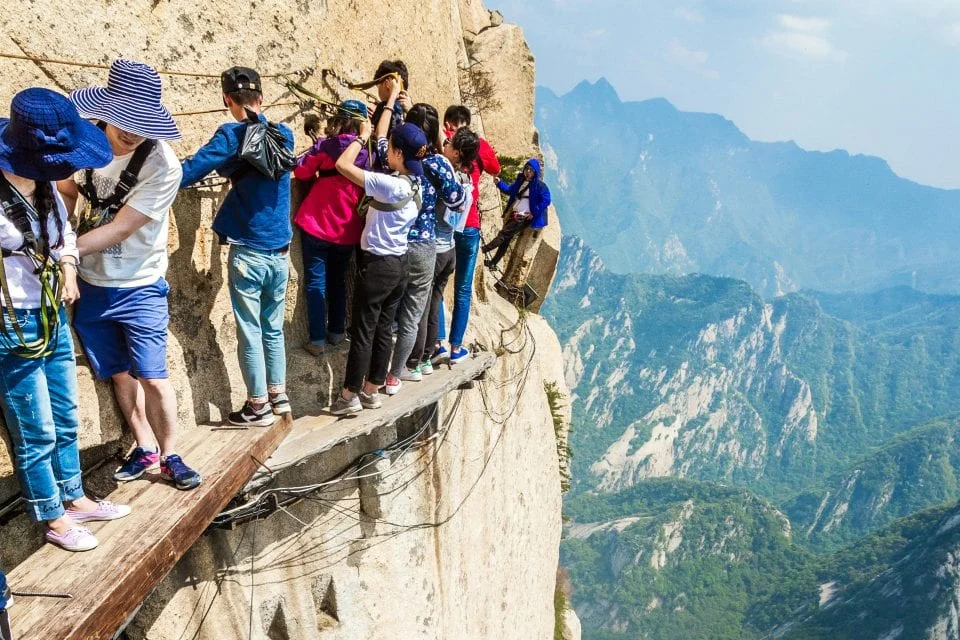 Маршрутът по Хуа Шан няма аналог. Балансиране по тесни скални первази, ужасяваща разходка по дъска, премерени стъпки по стръмни трасета, са само част от това, което ви очаква там. Опасността се увеличава, в случай, че трябва да се разминете с някой в противоположната посока. Тогава е необходимо да се вкопчите в изсечените скални неравности и да се надявате да попаднете на верига, на която да се закачите, в противен случай дори вятърът може да е отговорен за падането ви в пропастта. Ако все още Хуа Шан е мечтата от която не бихте се отказали, то внимавайте много!