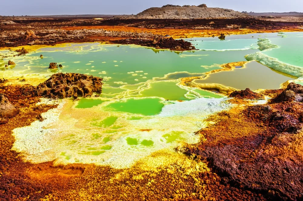 Лежащ в геологична депресия далеч под морското равнище, Данакил помещава безброй басейни, бълбукащи серни извори, вулкани и кисели езера. Често наричан „Порталът към ада“, прякорът му е напълно заслужен. Мрачен и безплоден, с недостиг на кислород, Данакил приквлича авантюристите, независимо от очевидните рискове. Не сте се отказали от идеята да посетите това зловещо място? Тогава не се задържайте там прекалено дълго.