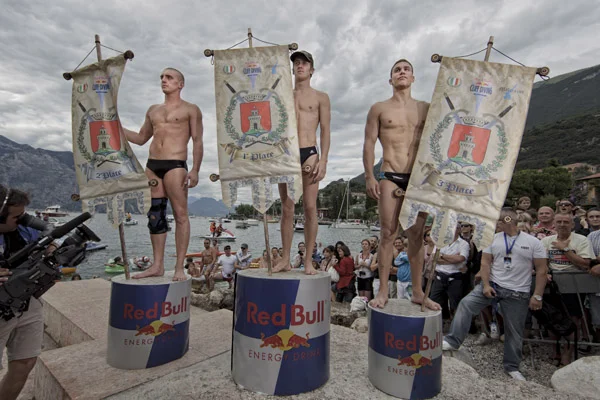 Извисяващата се на 24 метра тераса на средновековния италиански замък Scaliger бе недостатъчно предизвикателство за световния елит на екстремните скачачи от гледна точка на височина. Затова на още 3 метра над нея бе издигната платформата на сериите Red Bull Cliff Diving – опорна точка за петия кръг от шампионата тази година. С първо място отново триумфира състезателят с най-техничните скокове този сезон Гари Хънт. До британеца на подиума застанаха руснакът Артем Силченко и чехът Михал Навратил.