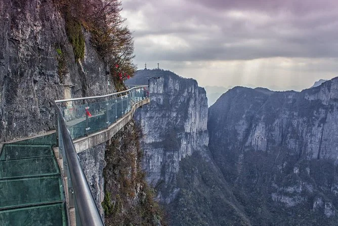 Не пропускайте и връх Джанкунджу („Стълб на Южното небе“), за да повървите по най-големия природен мост в света между скалите.
