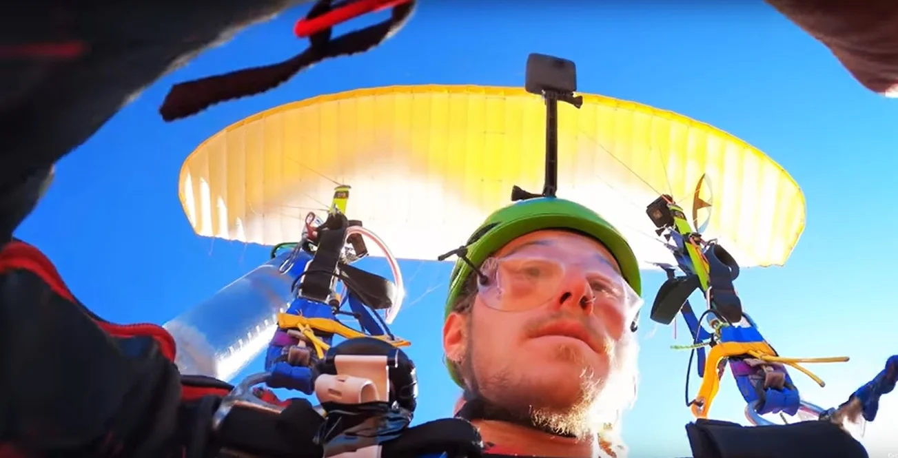 На видеото Бен Диксън, известен още като „Дико“, „прелита“ през тесен проход на окачена статична мрежа на около 400 м. височина над каньон. За да осъществи виртуозното си изпълнение, пилотът сам се откача от парапланера си, за да премине през дупката на статичната мрежа, след което увисва отново в небето, с помощта на парашут.
