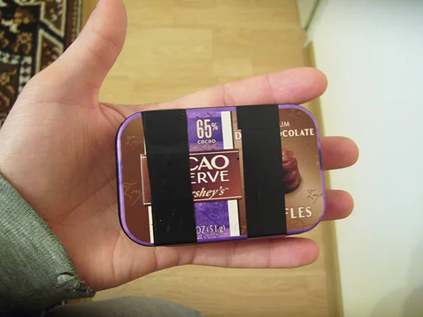 24. Малка свещ, издялкана до сечение с квадратна форма за по-удобно вместване в кутията. Полезна при палене на огън и осигуряване на светлина.