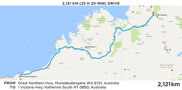 Благодарни сме на Джеймс Робъртсън, който е откривателят на този изтощителен 2121-километров маршрут. С кола се изминава средно за 23 часа и 20 минути. Пътят е по продължението на Австралийската автомагистрала, който се намира между горещите извори Катерние и Северозападната крайбрежна магистрала. Маршрутът е толкова дълъг, че в даден момент ще се намирате в различни часови зони.