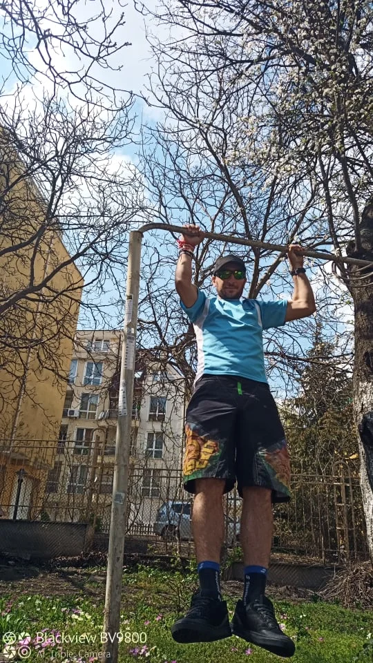 Вчера открих, че не съм здрав в ръцете, то с моите крачни спортове, как ли ще е друго, нооо понякога човек има за себе си по-други представи. Та по този повод, добре че имам двор, и лост на двора. Като започне прекалено много да не ме свърта започвам борбата с набиранията, а като грохна, увисвам с главата надолу… Помага за уросяването на мозъка!