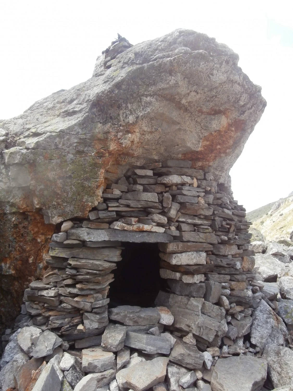 При едно от поредните си посещения и изкачвания в този район времето, както често се случва по тези места, бързо и рязко се влошава. Дъжд, суграшица, силен вятър и накрая обилен снеговалеж. За да се подслонят някъде младежите намират една огромна скала леко наведена и под нея търсят спасение. Докато бурята вилнее, а те сгушени под огромния камък си спомнят хижите и заслоните по Алпите. Още тук и в момента някой поставя първия камък откъм подветренната страна на камъка. Идеята ги завладява и всеки започва да наслагва камък върху камък. Това младежите правят и всеки път, когато са в този район.