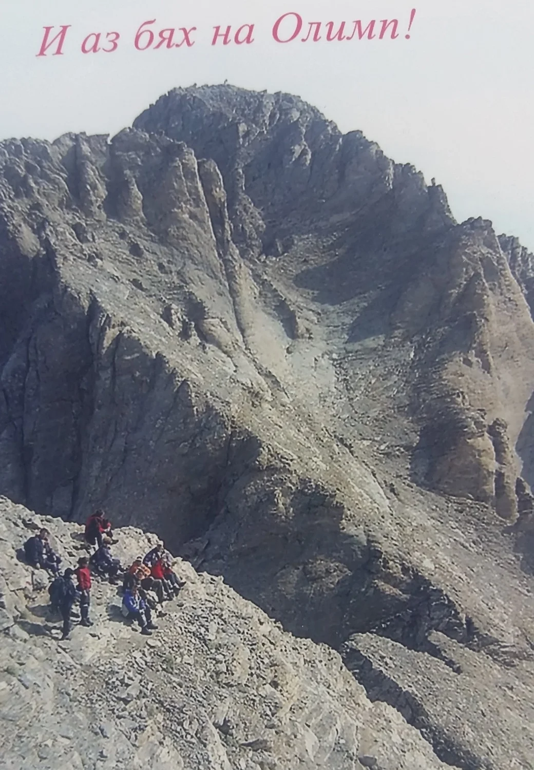 Няма друг връх извън пределите на България, който годишно да се изкачва от стотици българи. Малцина от тях обаче знаят, кога, как и кои са нашенците, направили първото българско изкачване на този толкова популярен и митичен връх. Поради това предлагам на многобройните му почитатели – на тези, които вече са се докоснали до „Трона на Зевс” , на тези на които предстои подобна радост, а защо не и на тези, които по една или друга причина, вече са пропуснали своя шанс, да разберат.
