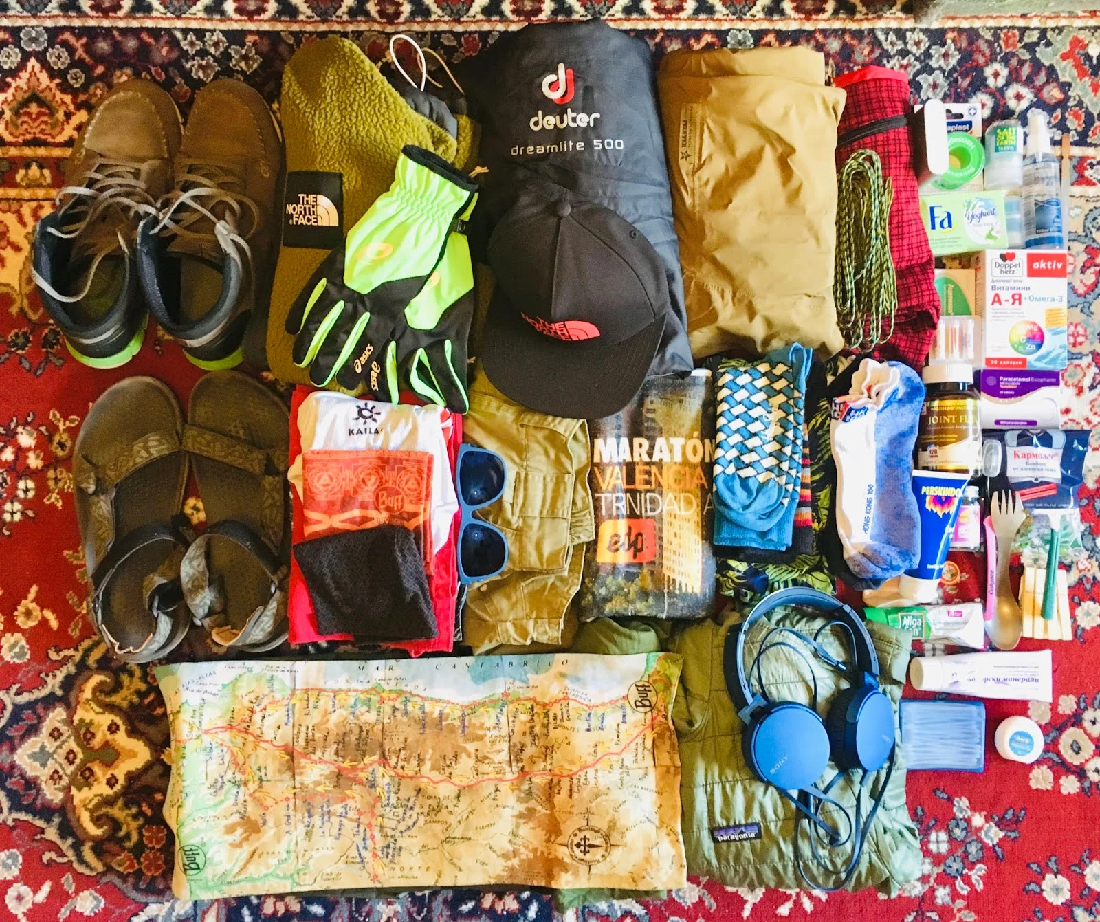 Обувките – 3/4 от времето изминах със сандали – сутрин с чорап, когато все още е хладно. В дъждовното време бях с леки обувки, които се намокряха още в началото на деня. Сандалите ми създадоха комфорт и лекота и никакви мазоли.