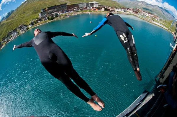 Паузата между последния за момента кръг от сериите Red Bull Cliff Diving в Италия (24 юли) и предстоящия в САЩ (20 август) бе използвана за поредно адреналиново предизвикателство – скок от хеликоптер, издигнал се на 25 метра над езерото край курорта Тин. Почти ледената вода с температура едва 8°С не сломи приключенския дух на шампиона в сериите Red Bull Cliff Diving Гари Хънт и познатата компания – Хасан Мути, Сирил Оумеджкан, Стив Блек (традиционен участик в сериите RBCD, който за съжаление се контузи преди началото на настоящия сезон) и българския претендент за място в шампионата Тодор Спасов. Те бяха специално поканени от кметството на Тин за участие в двудневно събитие.
