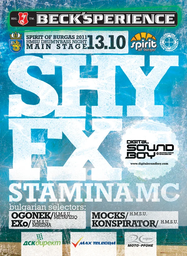 По-малко от седмица остава до тазгодишното издание на фестивала Spirit of Burgas, в който традиционно има силно участие на дръм енд бейс артисти. И тази година H.M.S.U са подготвили взривяващ лайн-ъп за втората фестивална вечер (13ти август), когато на главната сцена ще излязат Shy FX – един от пионерите, развили и променили джънгъл/дръм енд бейс музиката и популярният майстор на микрофона Stamina MC. От българска страна, редом със световните дръм енд бейс величия, ще се изявят добре познатите Konspirator /H.M.S.U/ б2б Mocks /HMSU, T-Free, Close 2 Death/, Exo / Mirizma, H.M.S.U/ и Ogonek /H.M.S.U., Metafiziq/.