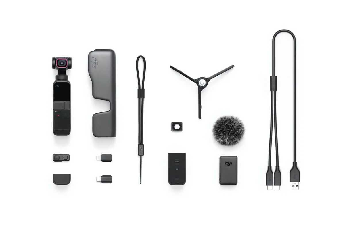 Отваряйки кутията на DJI Pocket 2 Creator Combo вече сте впечатлени от съдържанието – куп аксесоари, които ще ви помогнат да направите невероятни видеа и снимки. Разполагате с мини джойстик, приставка за монтаж 1/4″-20, Do-it-All Handle, безжичен микрофон, ветробран за микрофон, мини статив и широкоъгълен обектив или иначе казано, всичко, което ви е необходимо да снимате.