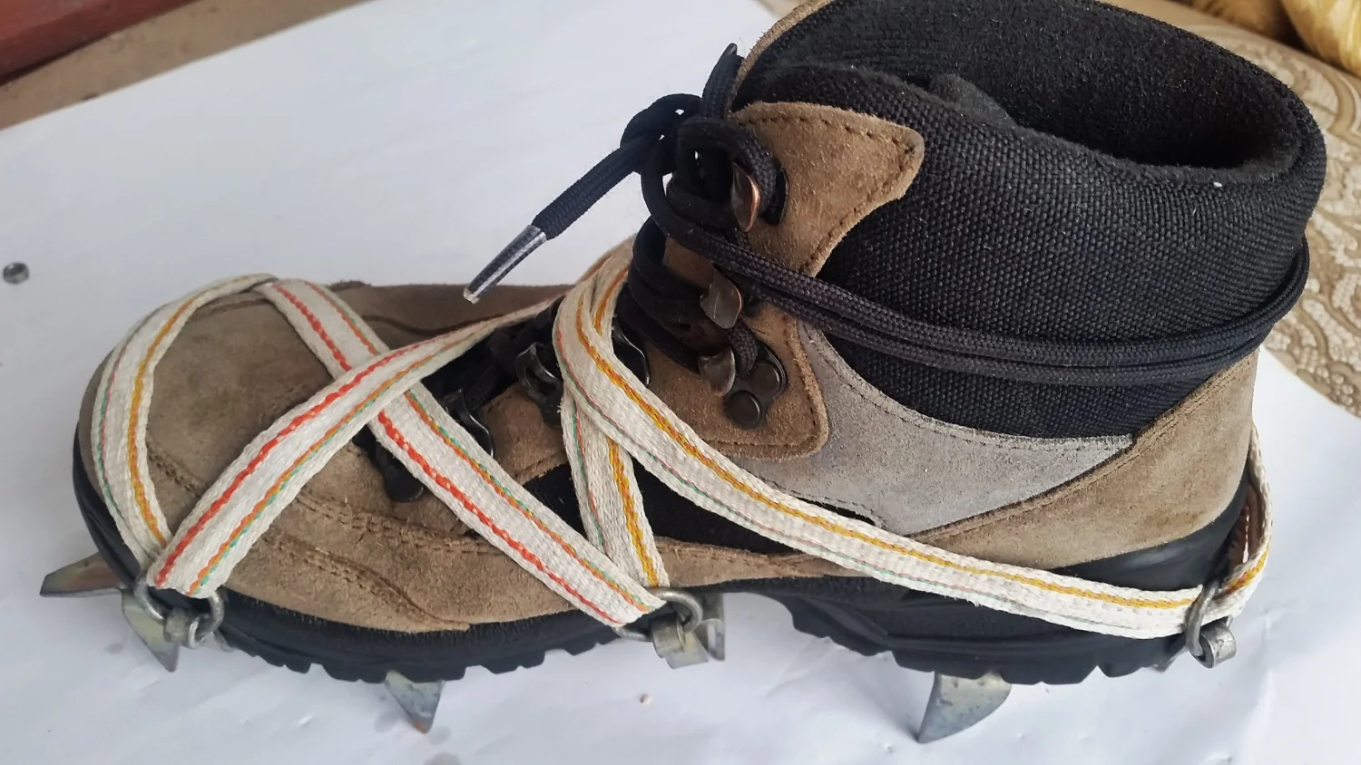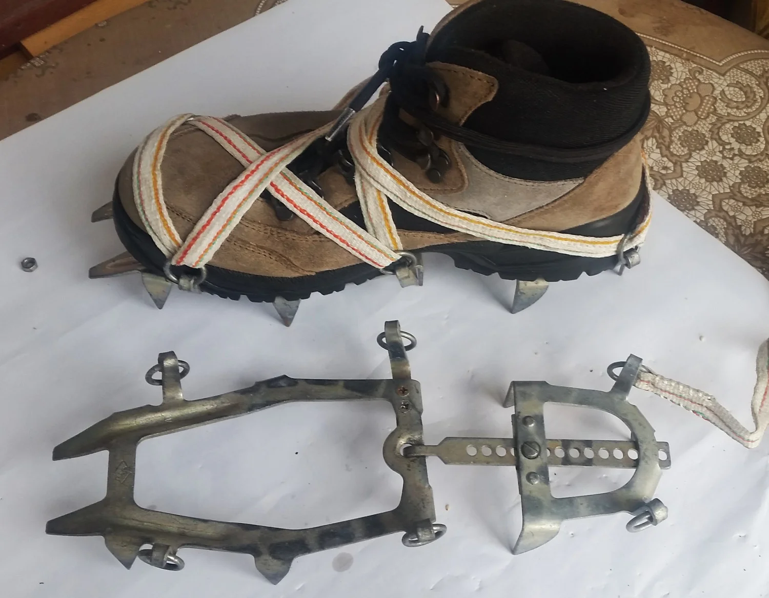 Уверявам ви обаче, че най-необходимия алпийски атрибут при зимни условия са котките. За нашите условия родното производство на завод „Червено знаме” гр. Дебелец са напълно подходящи. Пишейки това знам, че някои ще се усмихнат на тези мои уверения. Но аз не се страхувам от това, защото с тези котки, някога бе премината Безенгийскатта стена, бе изкачен първият български седемхилядник, бе направен „Кръстът на Ушба”, траверсът на „Шхелда”и редица още трудни върхове по Алпите, Кавказ и Памир.