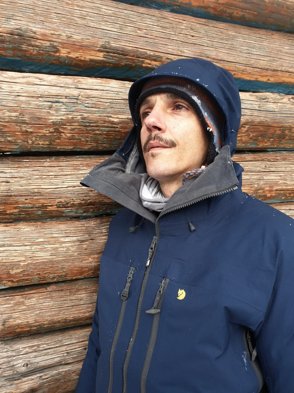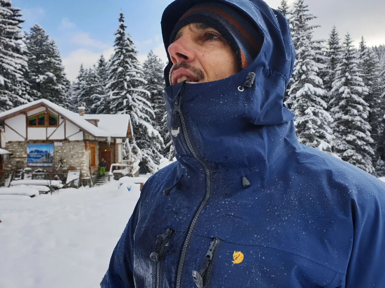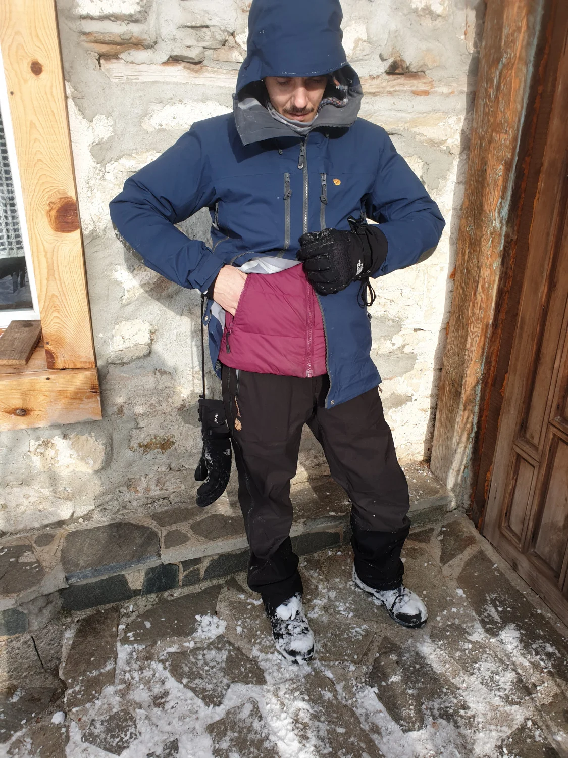 На разположение имаме яке Bergentagen Eco-Shell и панталон KEB Eco-Shell, които са перфектния горен слой (Shell) за разнообразни активности в зимната планина, с които очакваме да се сблъска нашият герой, прекарвайки цяла зима в планината. Характеристиките за водонепропускливост, тегло и други сухи цифри може да видите в онлайн магазина на Fjällräven, а ние ще ви разкажем за тяхното приложение в реални условия.