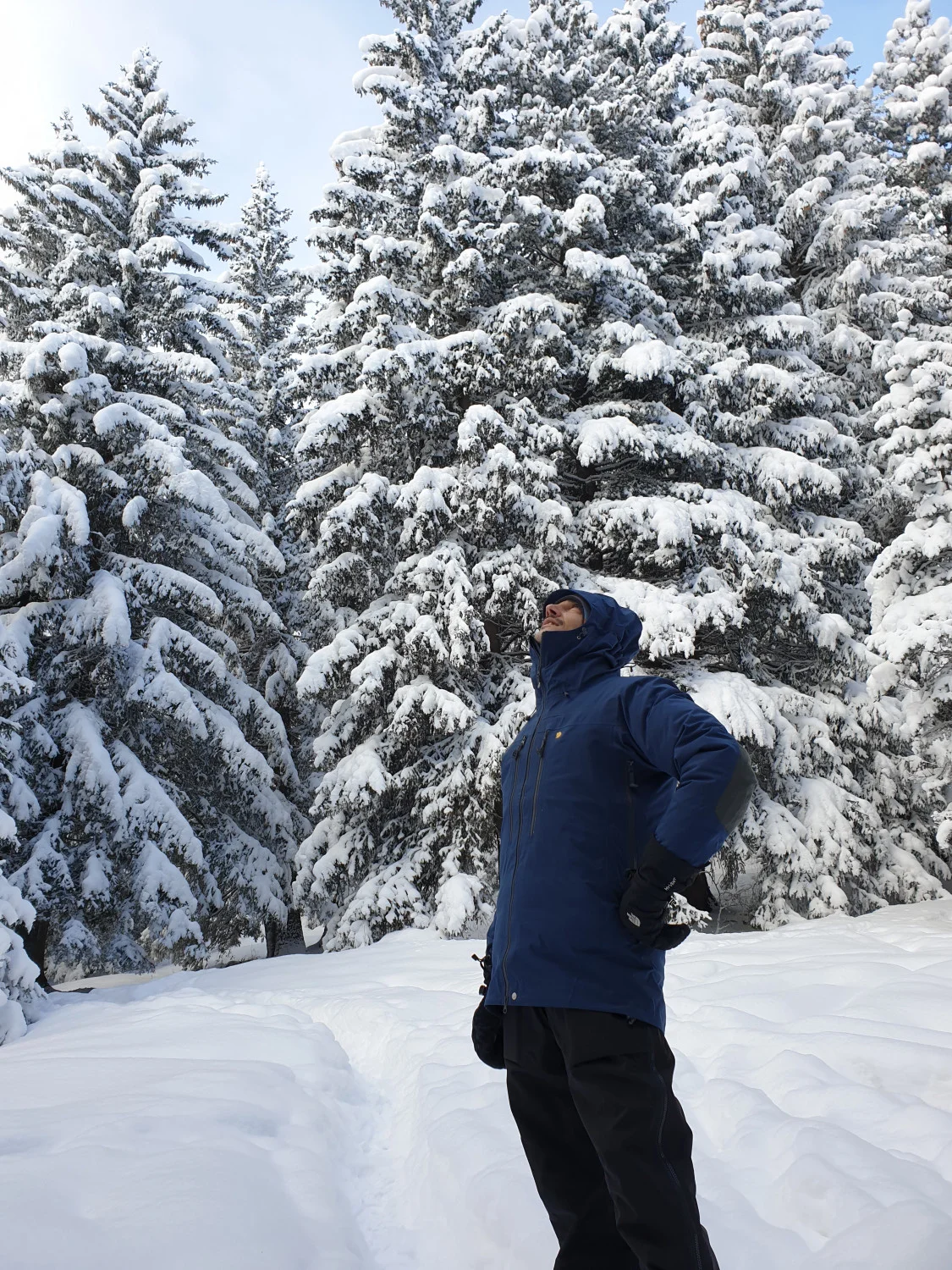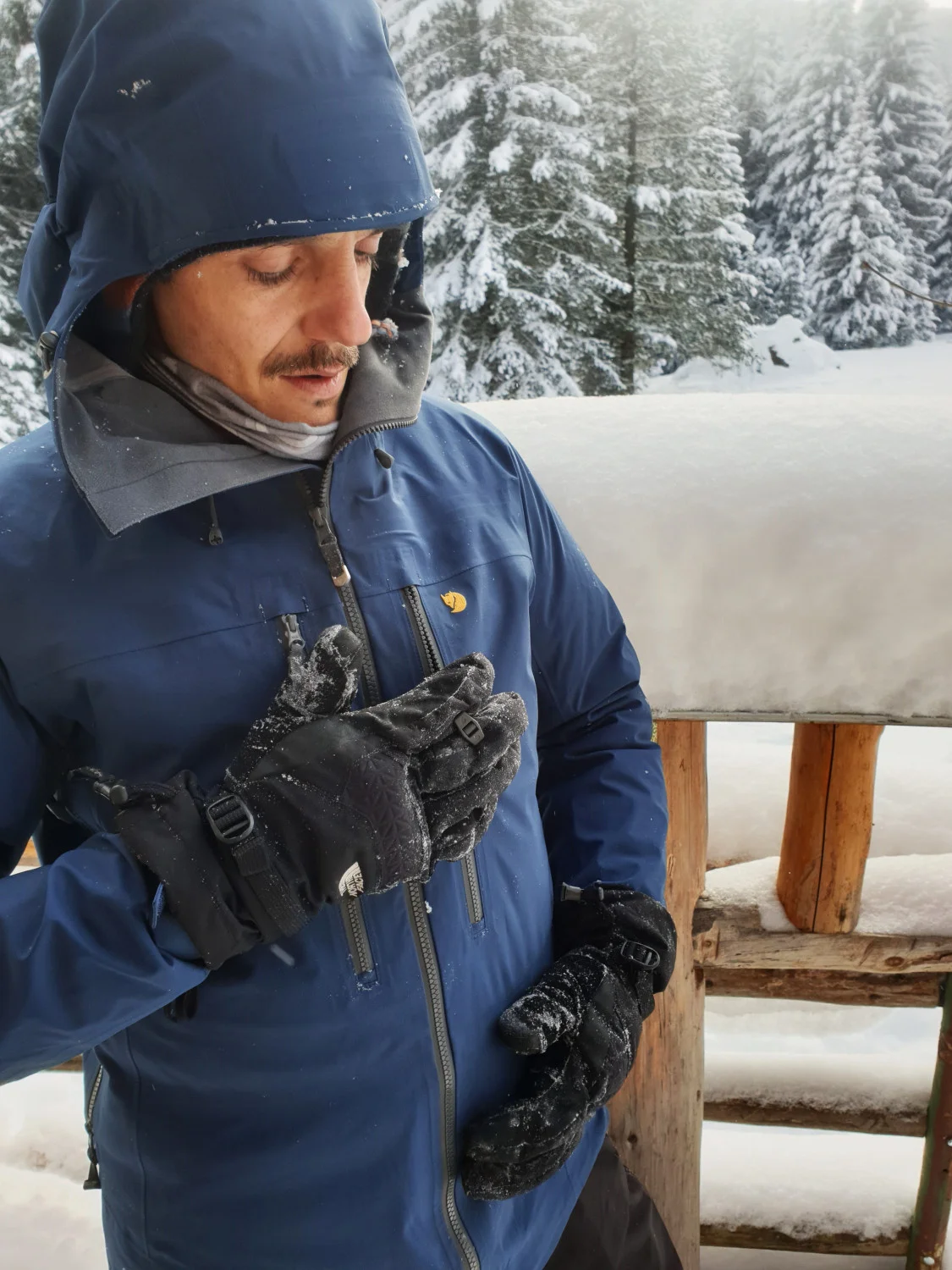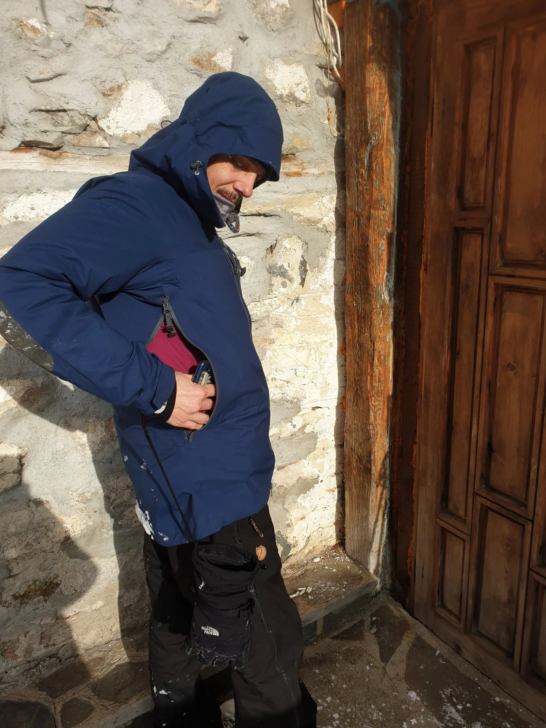 На разположение имаме яке Bergentagen Eco-Shell и панталон KEB Eco-Shell, които са перфектния горен слой (Shell) за разнообразни активности в зимната планина, с които очакваме да се сблъска нашият герой, прекарвайки цяла зима в планината. Характеристиките за водонепропускливост, тегло и други сухи цифри може да видите в онлайн магазина на Fjällräven, а ние ще ви разкажем за тяхното приложение в реални условия.