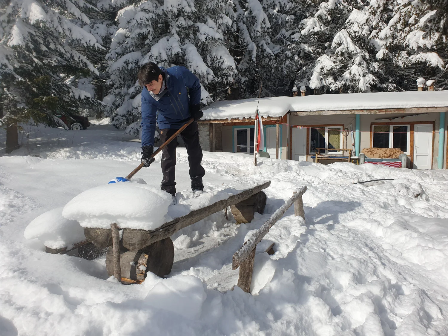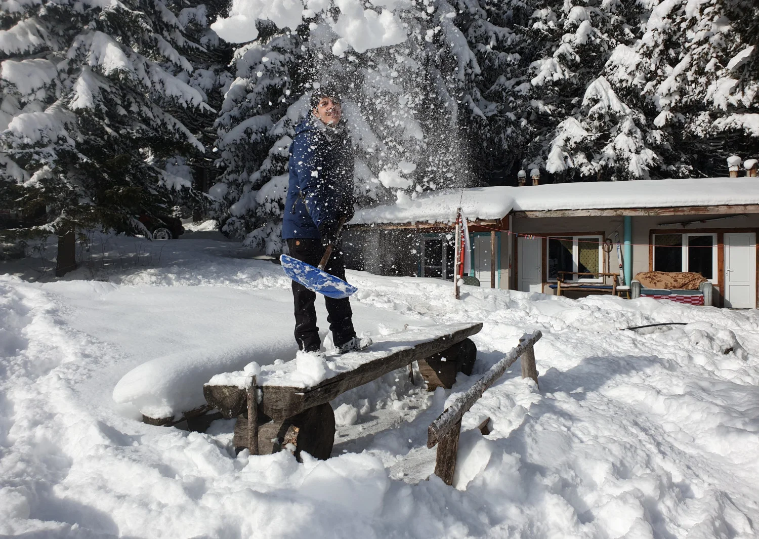 Почистване на терена. Сутринта започва с риене на сняг, особено, ако искаш да създадеш комфорт, там където живееш.