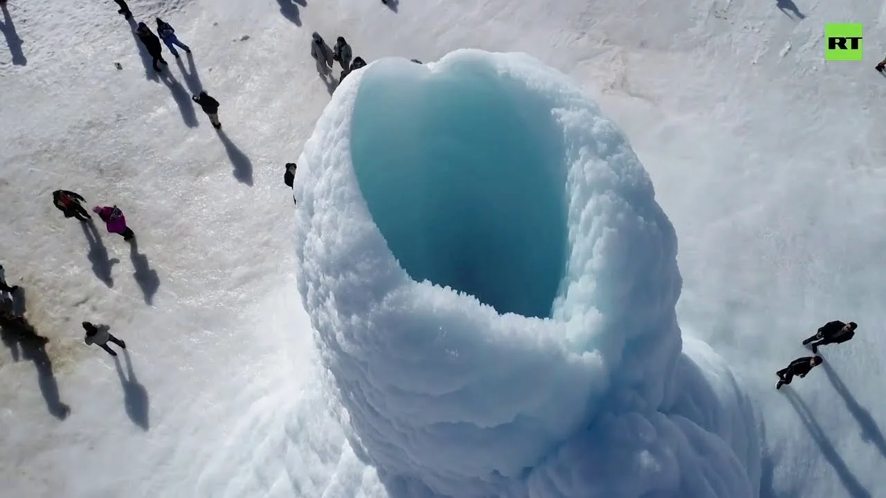 Всички бързат да се снимат с „ледения вулкан“, докато ледът започне да се топи. Туристическите агенции дори организират специални пътувания до него.